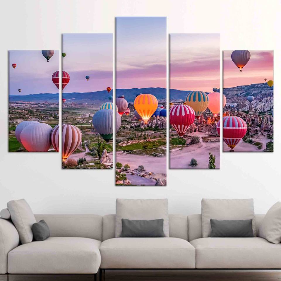 Cappadocia Sunrise Canvas Art: Goreme Landscape Wall Decor Print,SET OF 5 MIX CANVAS