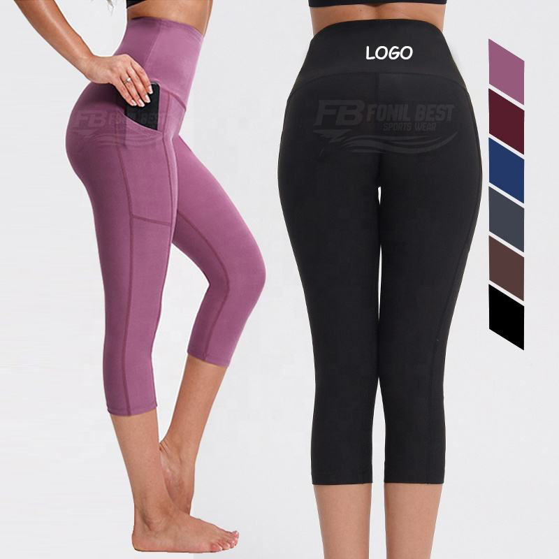 Capri Leggings for Women High Waisted Polyester Capri Leggings Women 3/4 Capri Leggings Yoga Pants With Phone Pocket