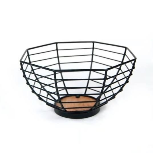 Captivating Powder Coat Black Matte Finish Metal Wire Basket Wooden Base for Kitchen Circle Shape Storage Solution Made Iron