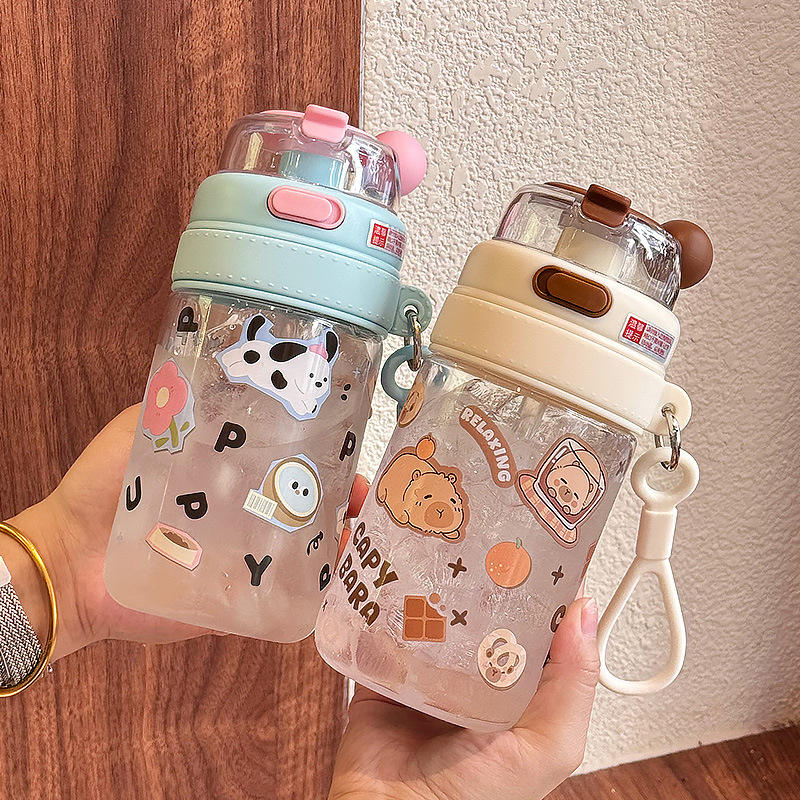 Capybara Cartoon Water Bottle For Kids Tritan 500Ml With Straw Portable School Use Summer Drinkware