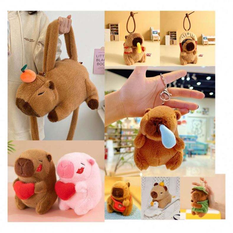 Capybara Little Doll Series Cute Backpack Swimming Ring Embroidered Bear Plush Doll Children's PP Cotton Mesh Stuffed Animal Toy
