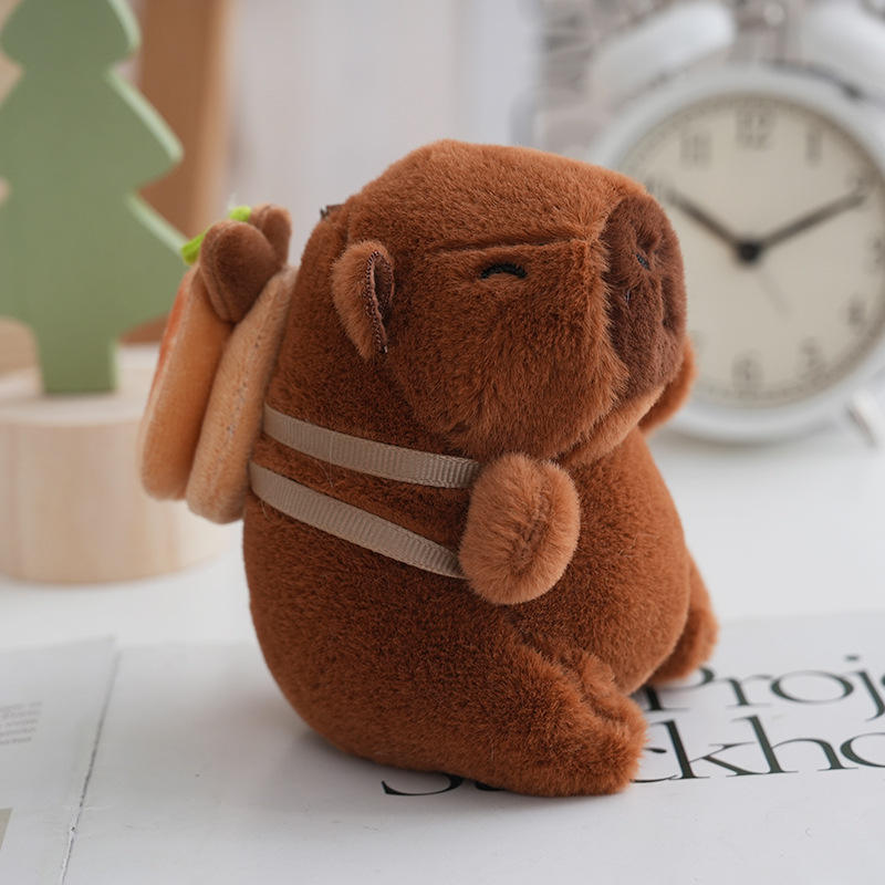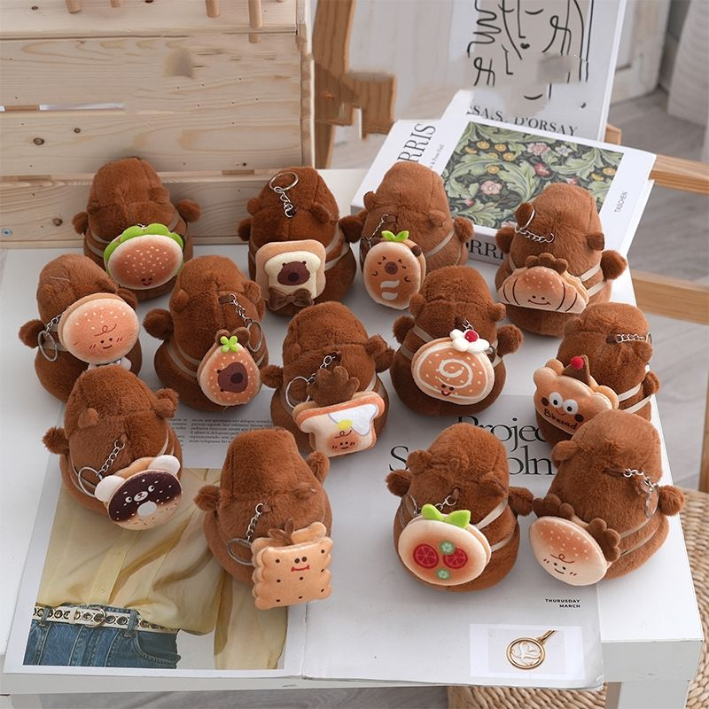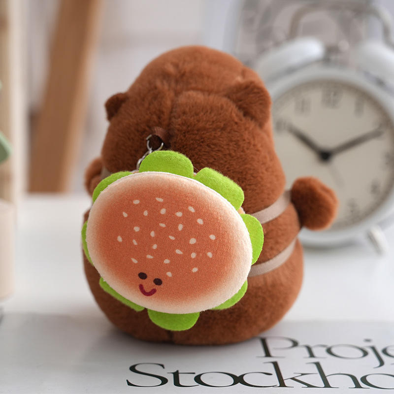 Capybara Plush Stuffed Animal Toy Hamburger Croissant Design Embroidered Super Soft PP Cotton Filled Fur