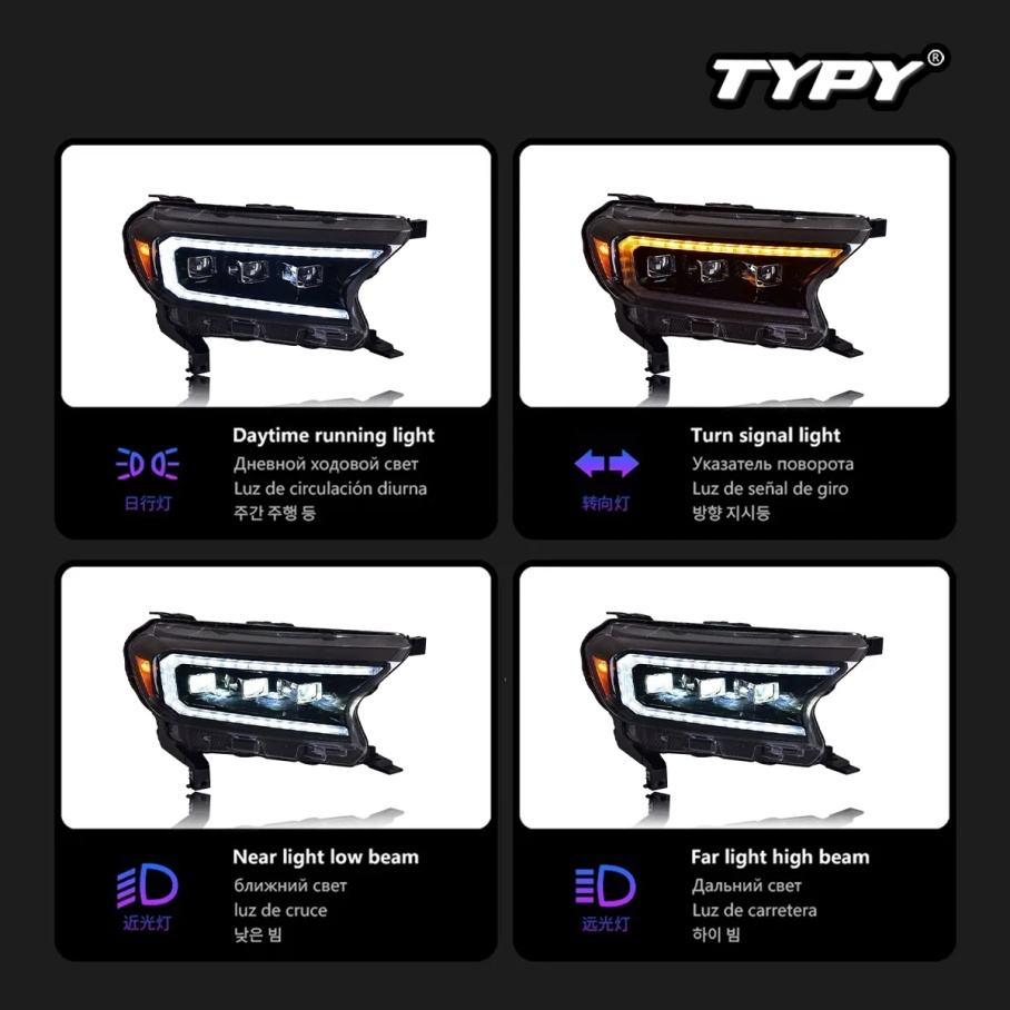 Car Light LED Projector Headlights for Ford Ranger T6 2016-2021 With Breath & Dynamic DRL, Sequential Turn Signal Lamps Assembly