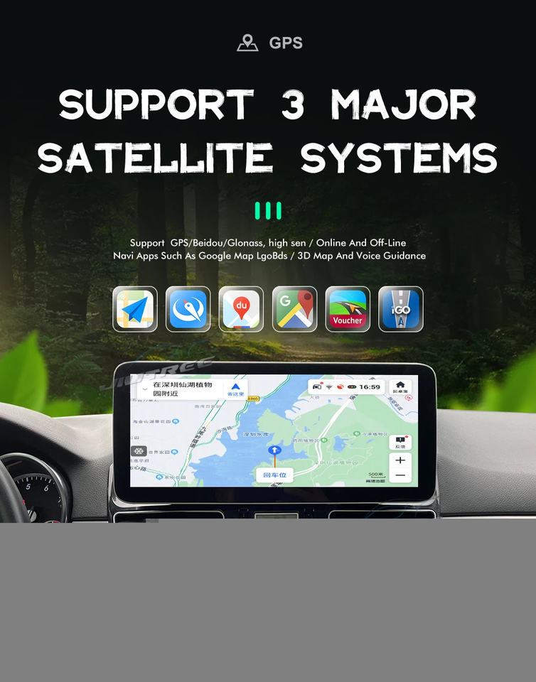 Built-in Gps, MP3 / MP4 Players, Touch Screen, DVR, FM Transmitter, Backup camera, AUX Port, HDMI In/OutCombination