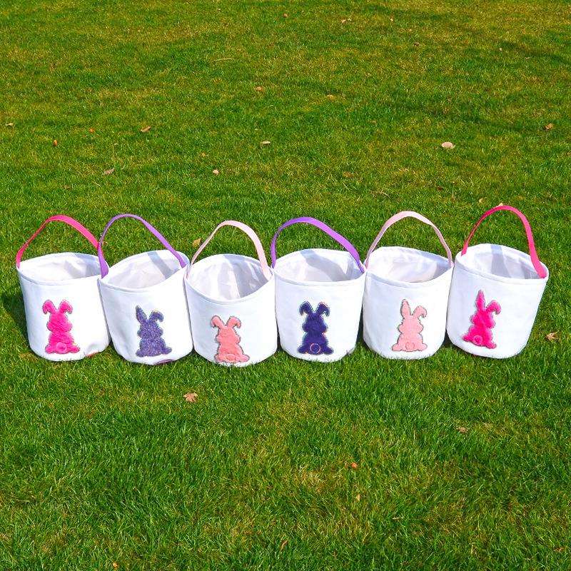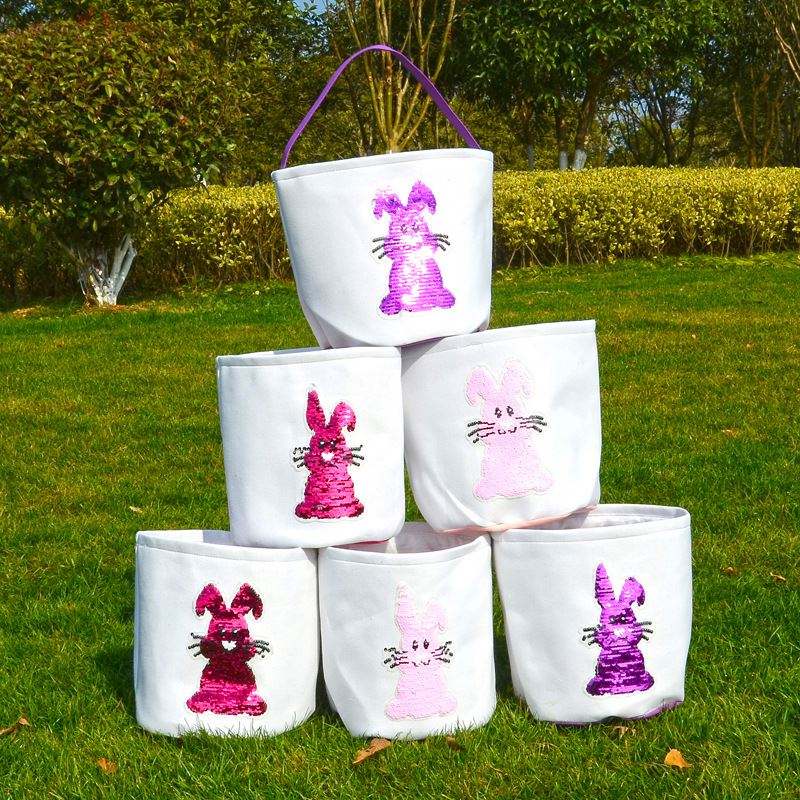 Car Sequin Shining Patch Plush Rabbit Pattern Canvas Egg Basket Handbag Easter Gift Bag Customization
