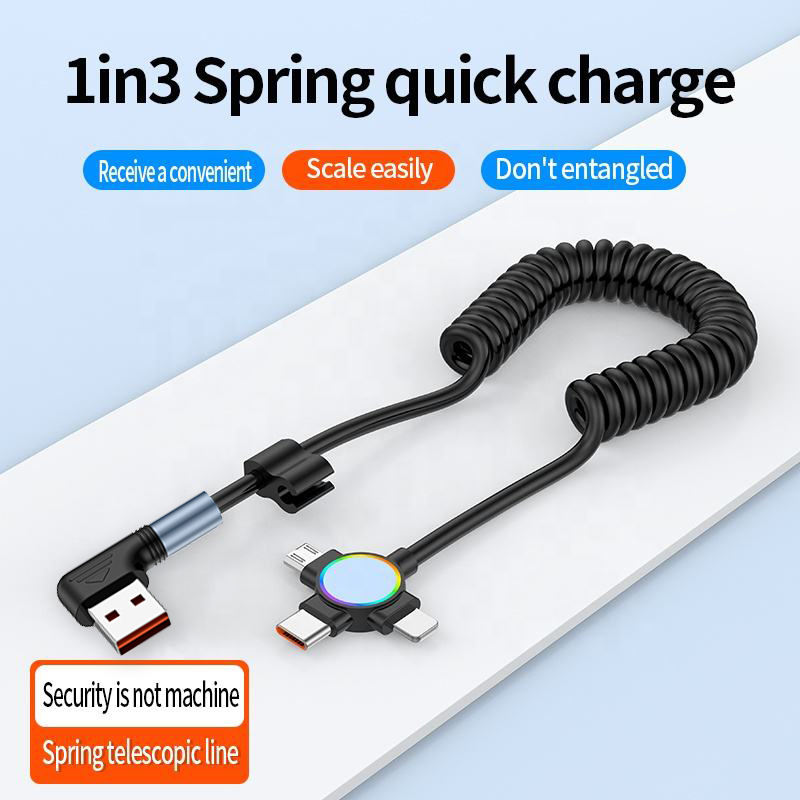 Car Spring USB to C-type Data Cable PD 90 Degree Right Angle Phone Charging Cable TPU for iPhone for Samsung
