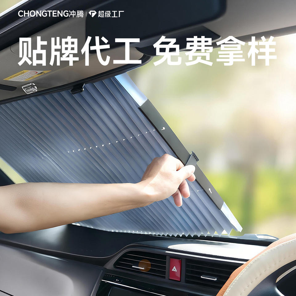 Car Sunshade Curtain Front Windshield Retractable Aluminized Film Heat Insulation Suction Cup Installation Summer Use