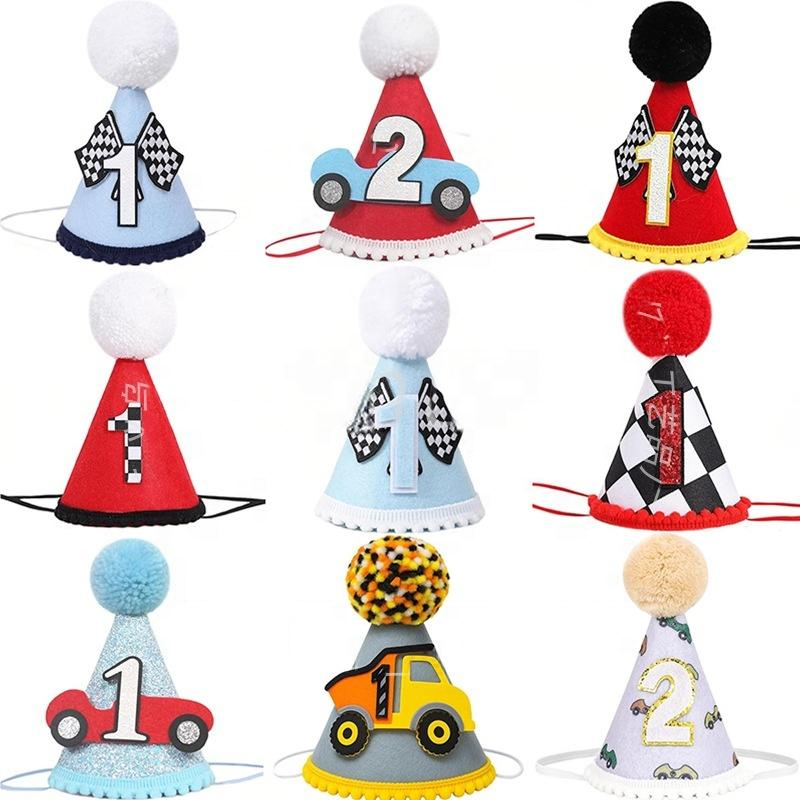 Car Themed Baby Birthday Hat Truck Racing Design Non-Woven Fabric Children's Graduation Valentine's Day Party Decoration Photo