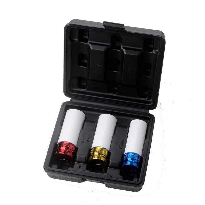 Car Tire Protector Socket Set 3 Piece Carbon Steel Auto Repair Tool Kit Colored Sockets For Mechanical And Automotive Repair