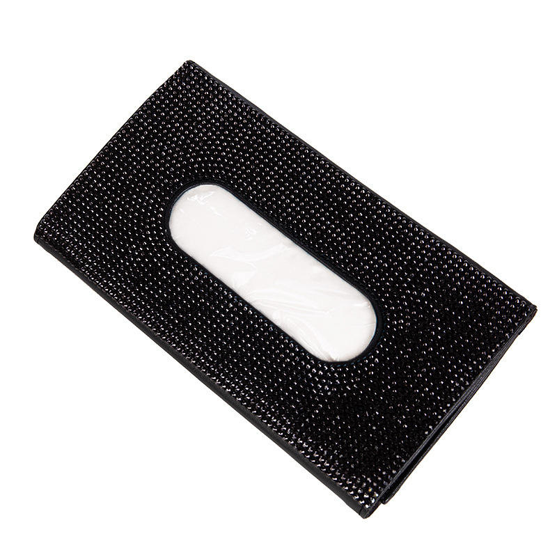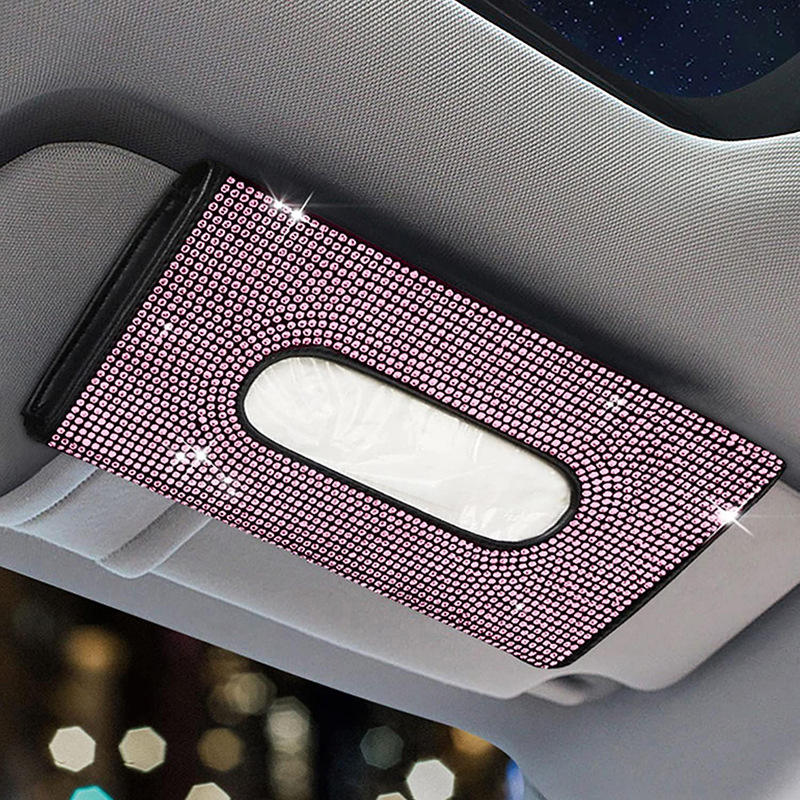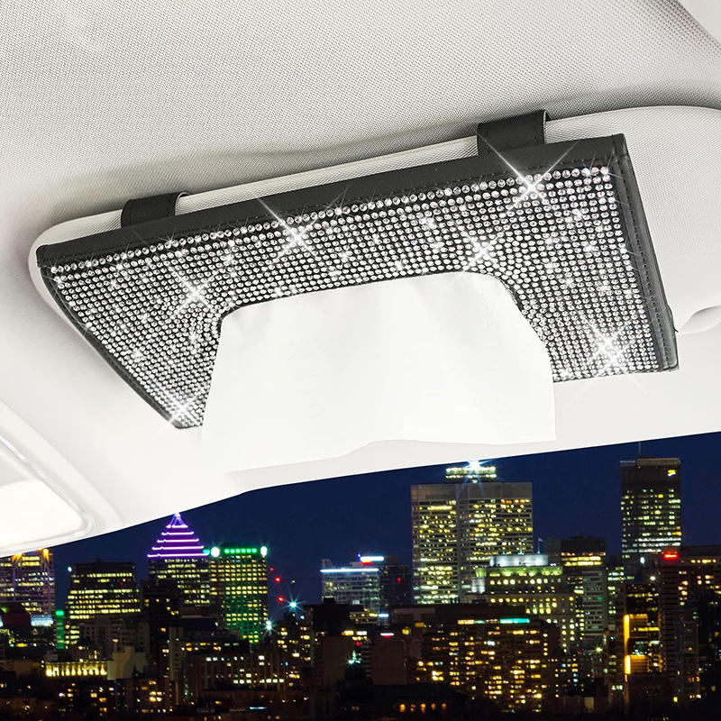 Car Tissue Box Sun Visor Rhinestone Studded Leather Hanging 23x13cm For Car Interior Accessories