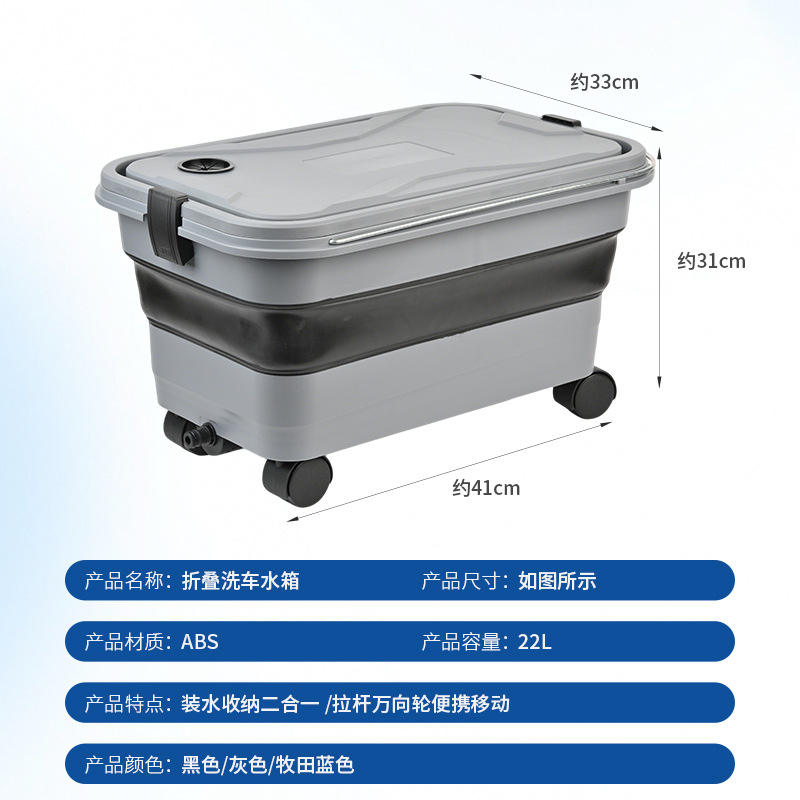Car Wash Collapsible Bucket Large Capacity Plastic With Wheels Portable Storage For Car Cleaning And Repair Tools