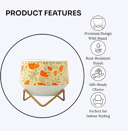 Caramel Mini Metal Planter Unique Designer Trendy Small Indoor Pot Modern Tabletop Decorative Planter Gift Item Orange Flowers
