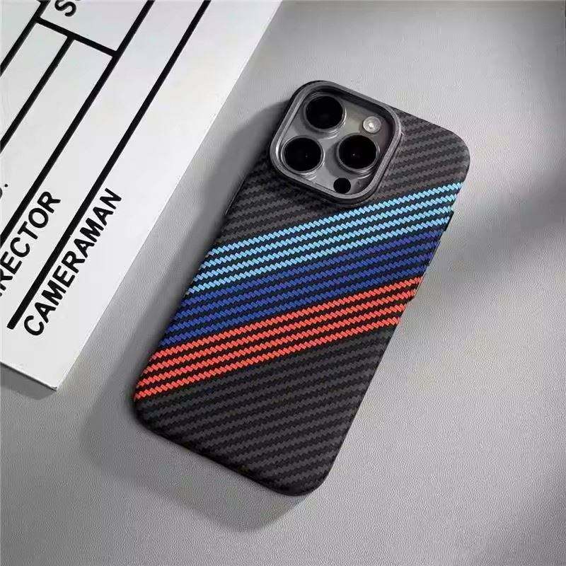 Carbon Fiber Phone Case Magnetic PC Phone Cover With Metal Camera Frame Support Wireless Charger for IPhones 17 Pro Max 16 15 14