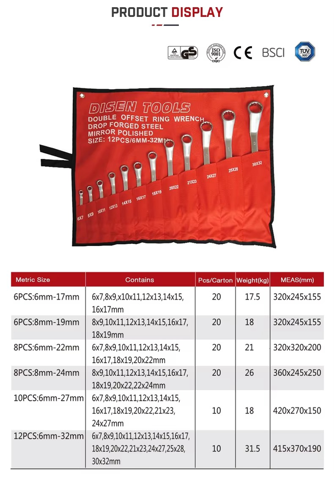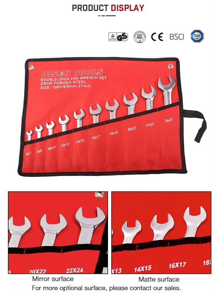 Carbon Steel Chrome 6/8/10/12pcs Open End Spanner Wrench Set DIY Grade Metric Measurement 17mm 21mm OEM Customizable