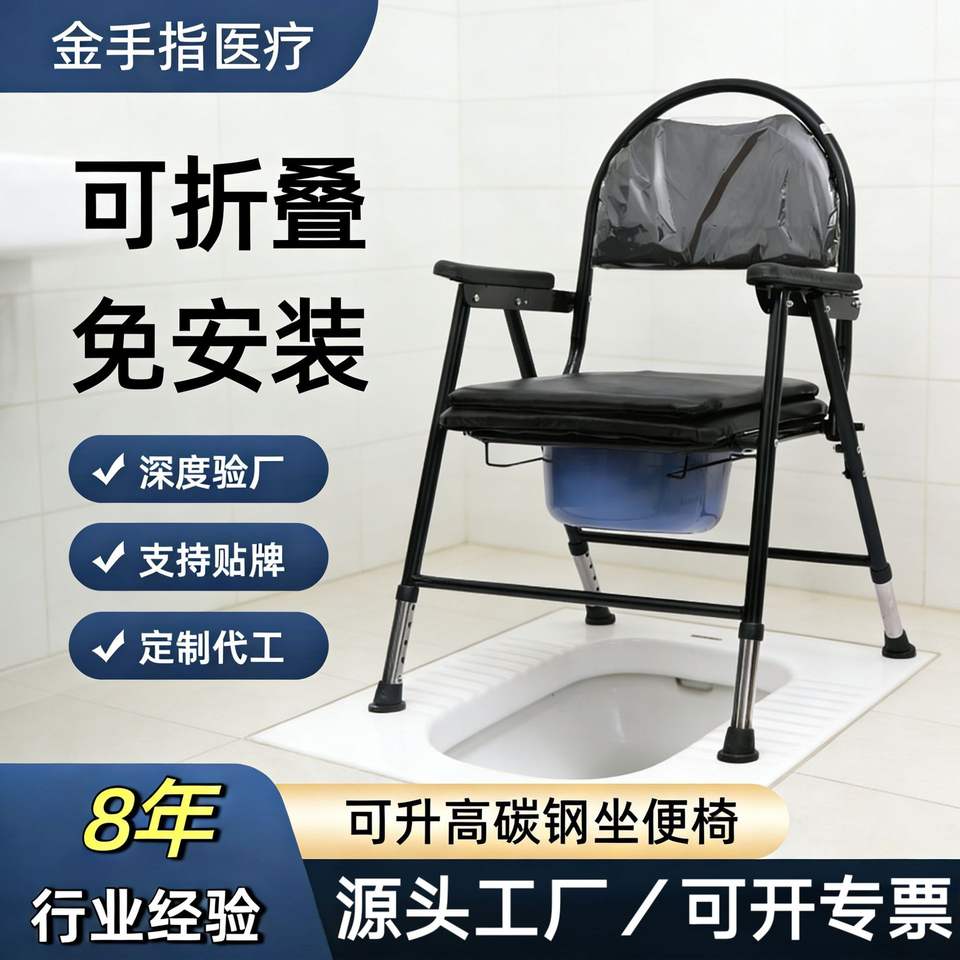 Health product name:Carbon steel height-adjustable commode chair