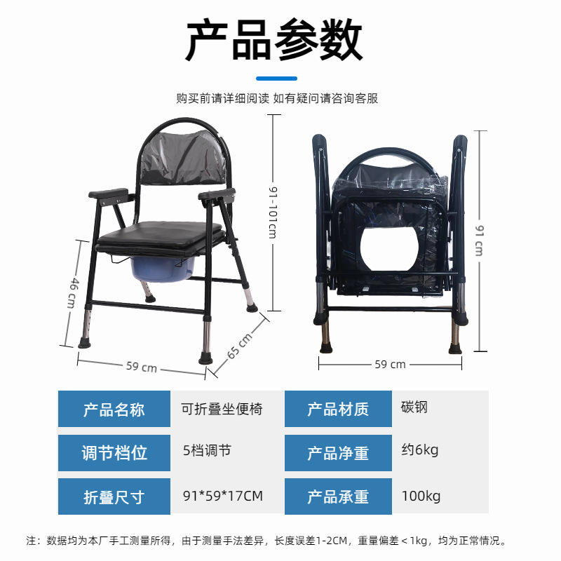 Carbon Steel Commode Chair Adjustable Foldable With Non Slip Legs For Elderly And Pregnant Women Home Use