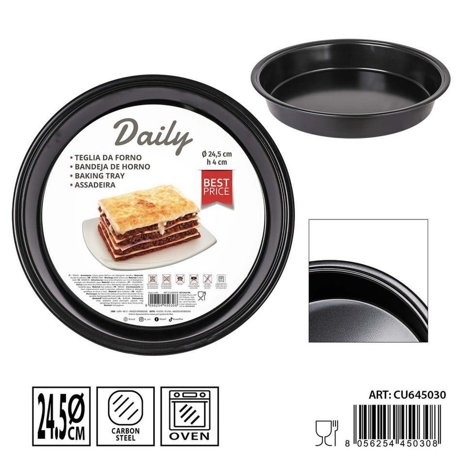 Carbon Steel Round Baking Tray 24.5x4cm 0.4mm Black (Goldflon Coating) - Bakeware