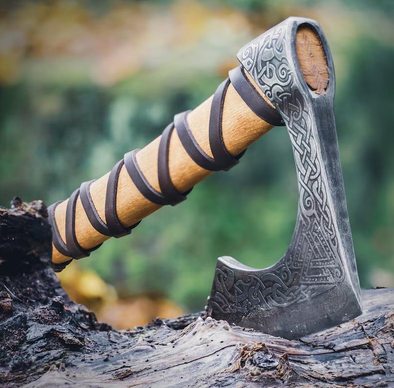 Carbon Steel Warrior Viking Axe Hand Forged Engraved Medieval Hatchet Bearded Camping Axe Wood Handle
