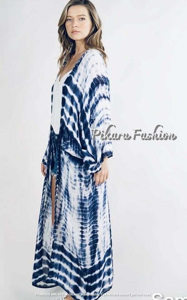 Cardigan Tie Dye Women Wholesale Low Price Product Long Sleeve Open Front Bikini Cover Up Casual Cotton Kimono Dress