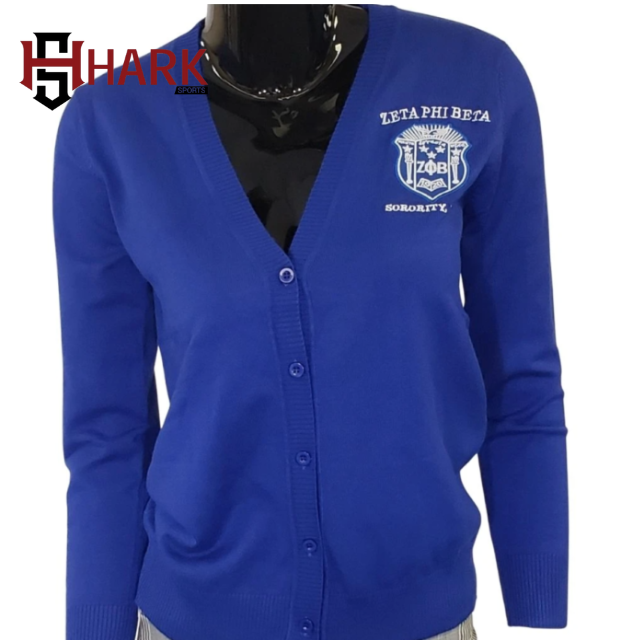 Cardigans Women's Sorority v Neck Chenille Zeta Phi Beta Letters OEM Stripped Button Down Divine Nine Sweaters