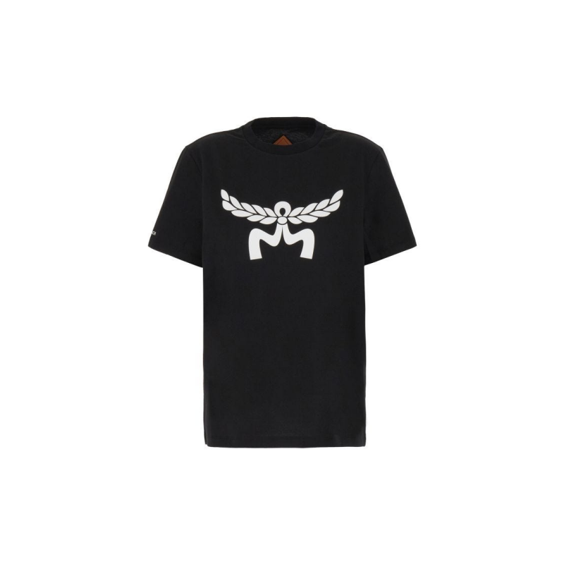 Careful Selection MCM Black Pure Cotton T Shirt With Contrasting Embroidered Logo on the Sleeve