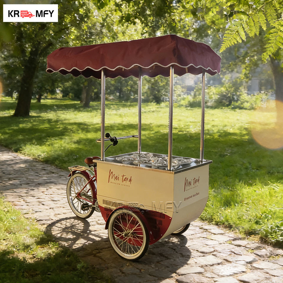 Cargo Bike Towable Food Ice Cream Vending Cart with Rust Resistant Metal Construction for Outdoor Use