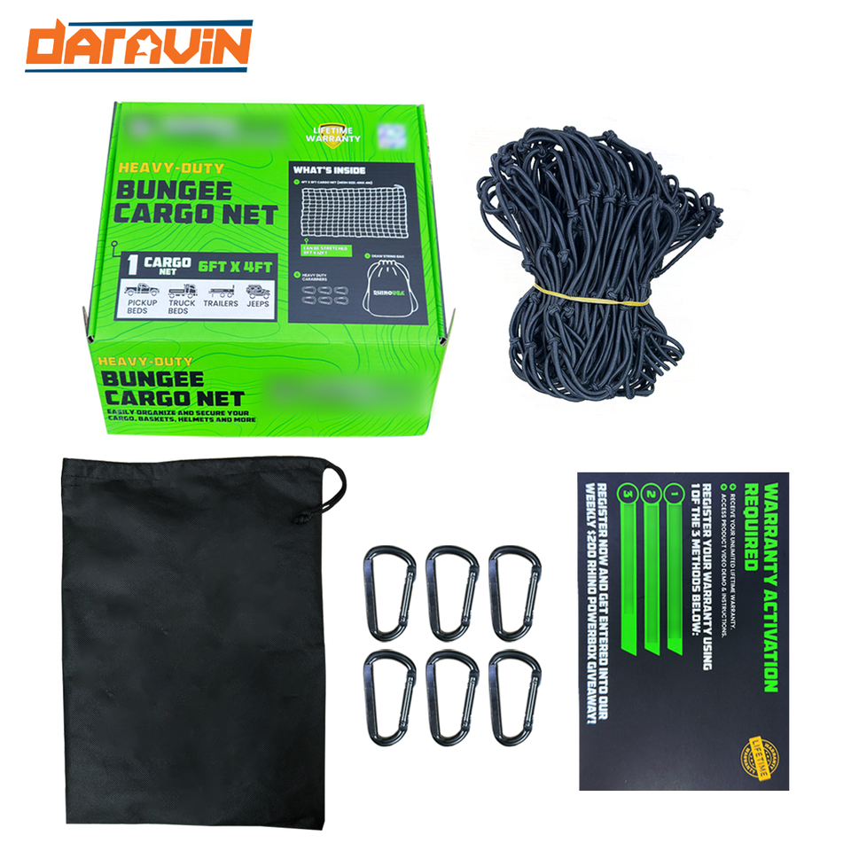 Cargo Net for Pickup Truck Bed (4'x6' Stretches to 8'x12') - 12 Metal Carabiners, Bungee Mesh Accessory with Strap Hooks