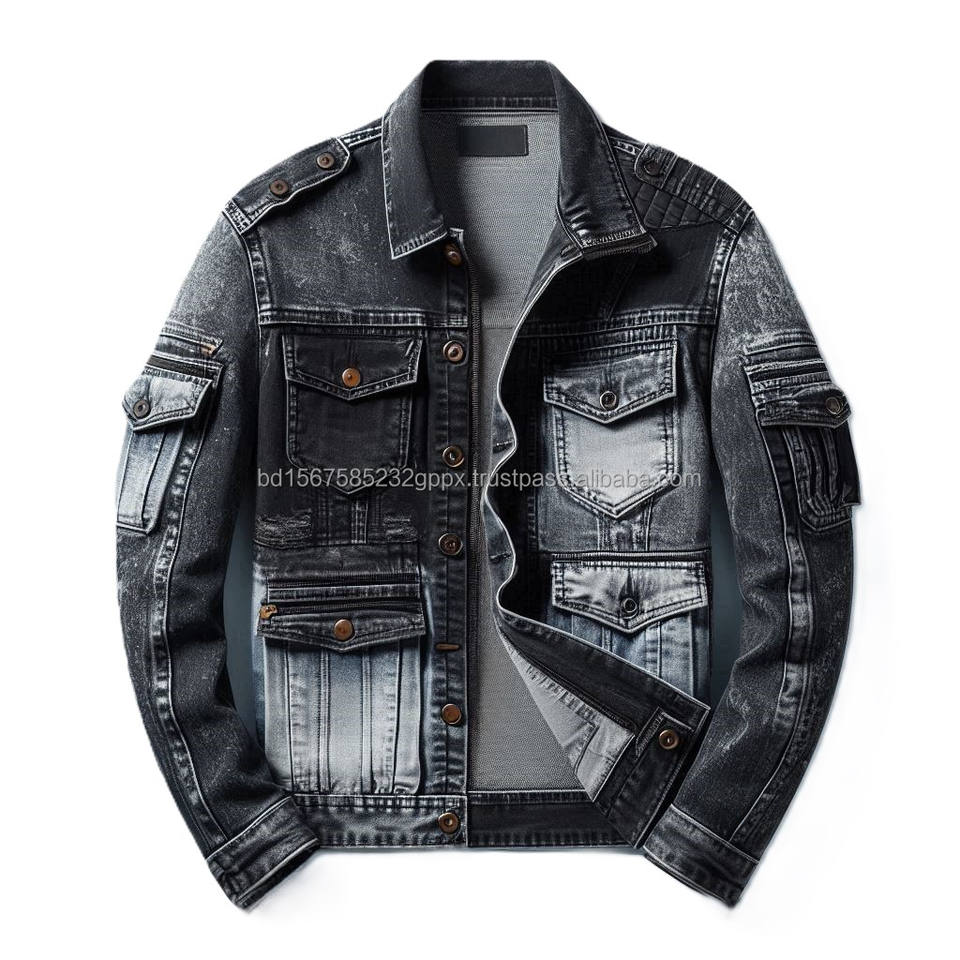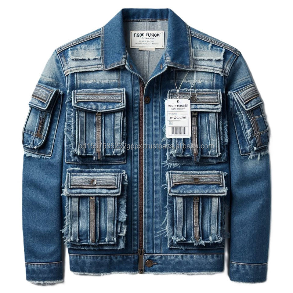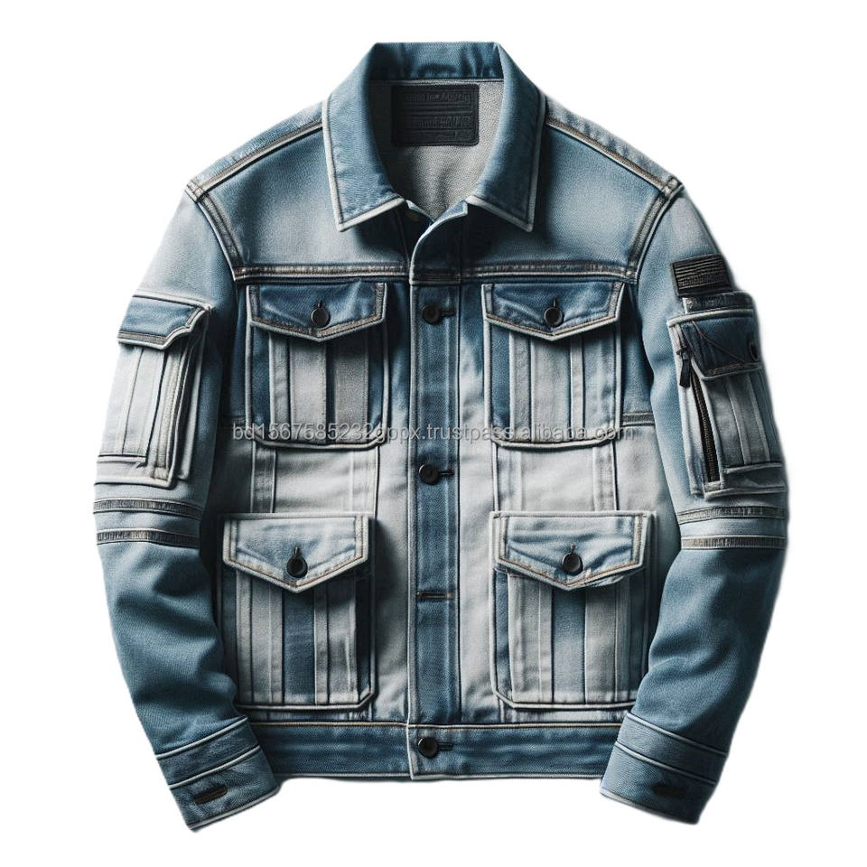 Cargo Pockets Denim Jeans Jackets Fashionable Workwear Uniform Styles Zipper/Button Multi-Pockets Winter Utility Cargo Jackets