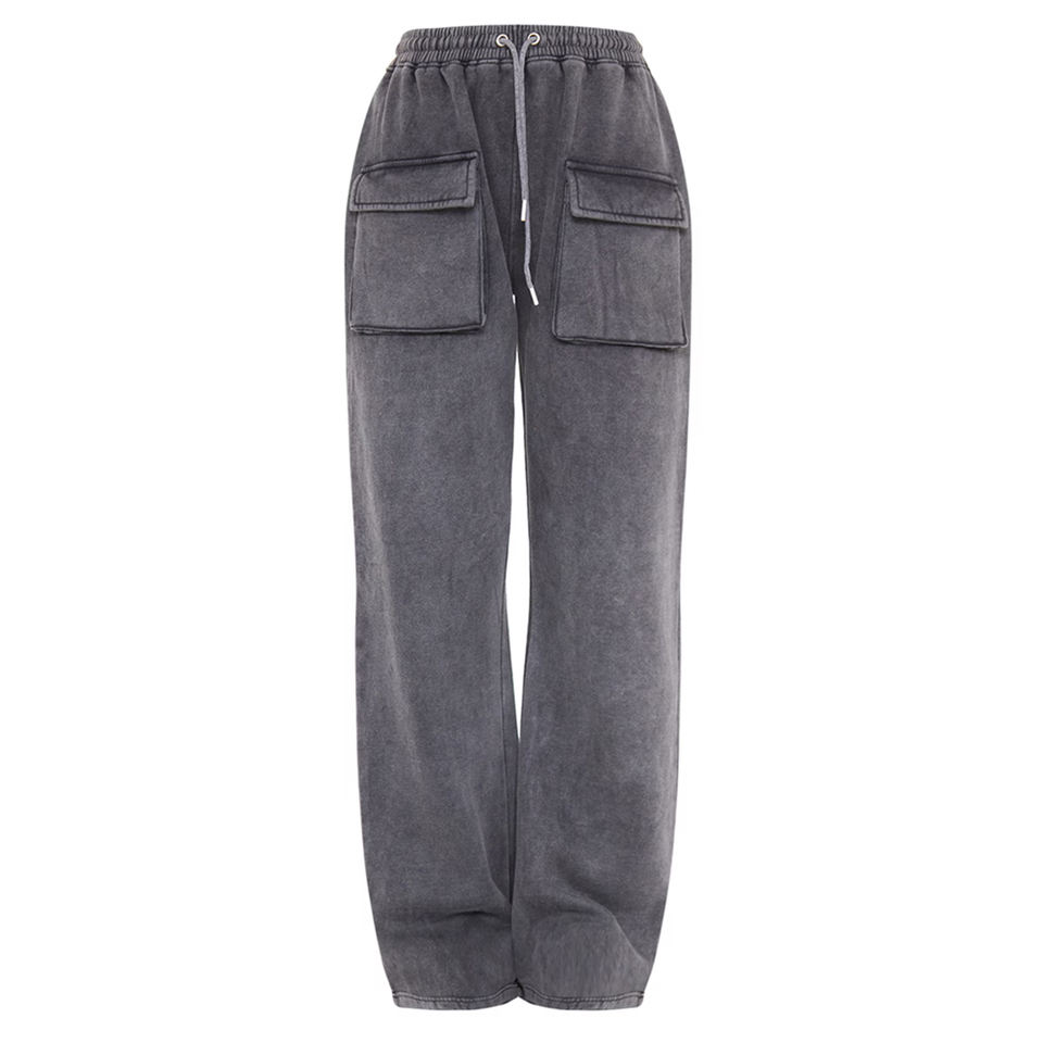 Cargo Style Sun Faded Vintage Acid Wash Custom Printing Logo Straight Wide Leg Baggy Sweatpants Men Flared Stacked Joggers