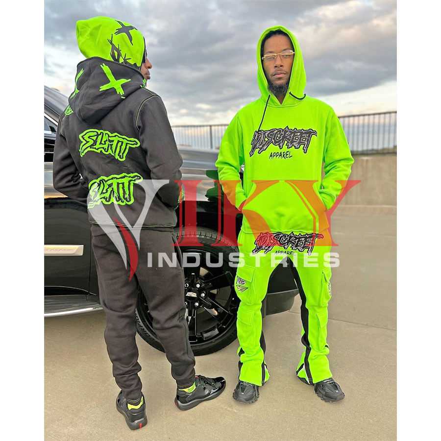 Full Zipper Flare Tracksuit for Men Stacked Flared Sweatpants and Hoodie Set Custom Tracksuit by VIKY INDUSTRIES