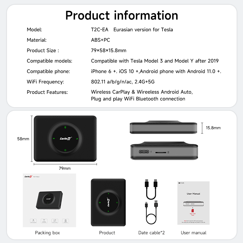 Product name:CarlinKit Wireless CarPlay Adapter For Tesla