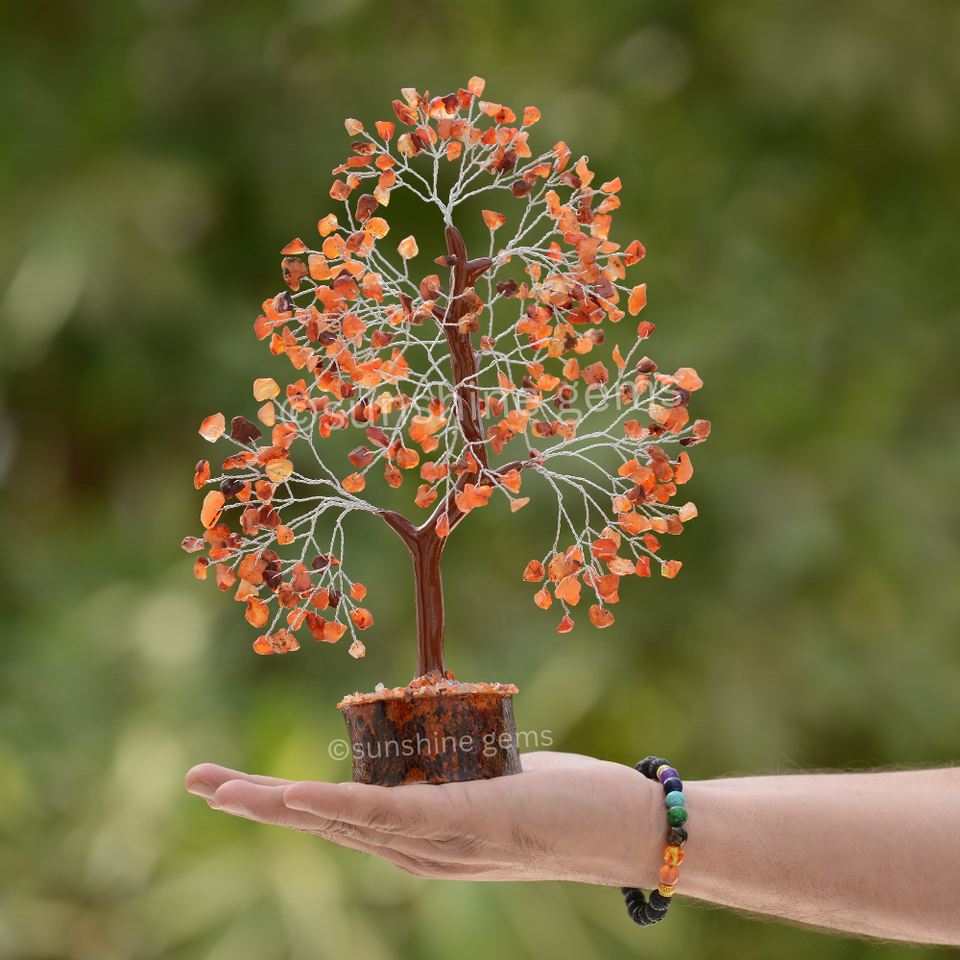 Carnelian Crystal Tree Handmade Gemstone Figurine for Positive Energy Feng Shui and Healing Ideal for Home Office Decor in India