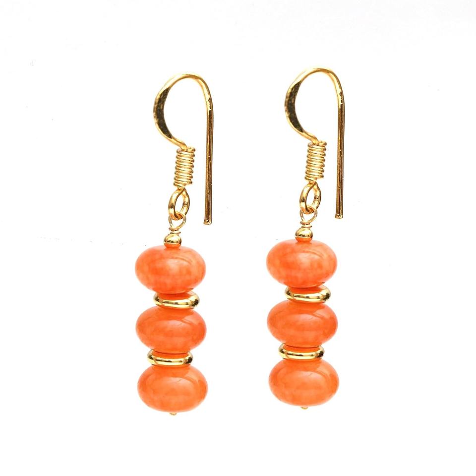 Carnelian Dangle Earrings Handmade Gold-Plated Design with Spacer Beads, Elegant Orange Gemstone Jewelry for Women