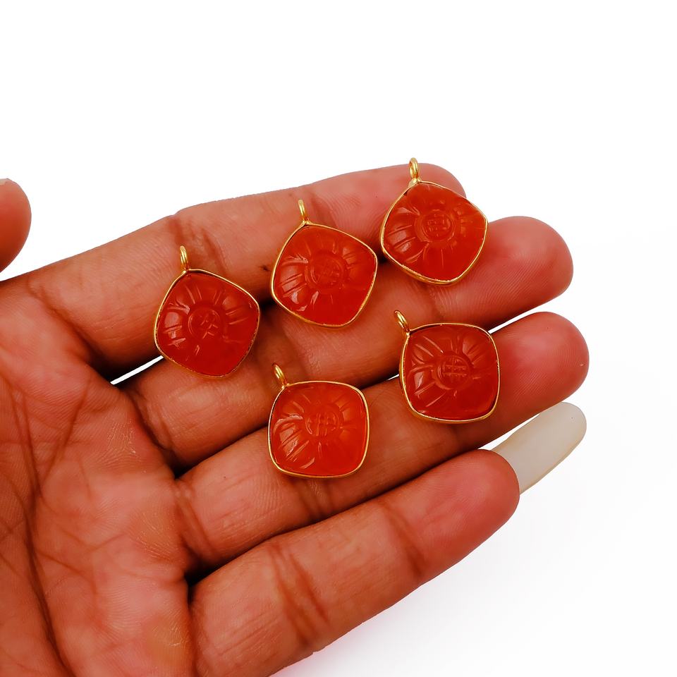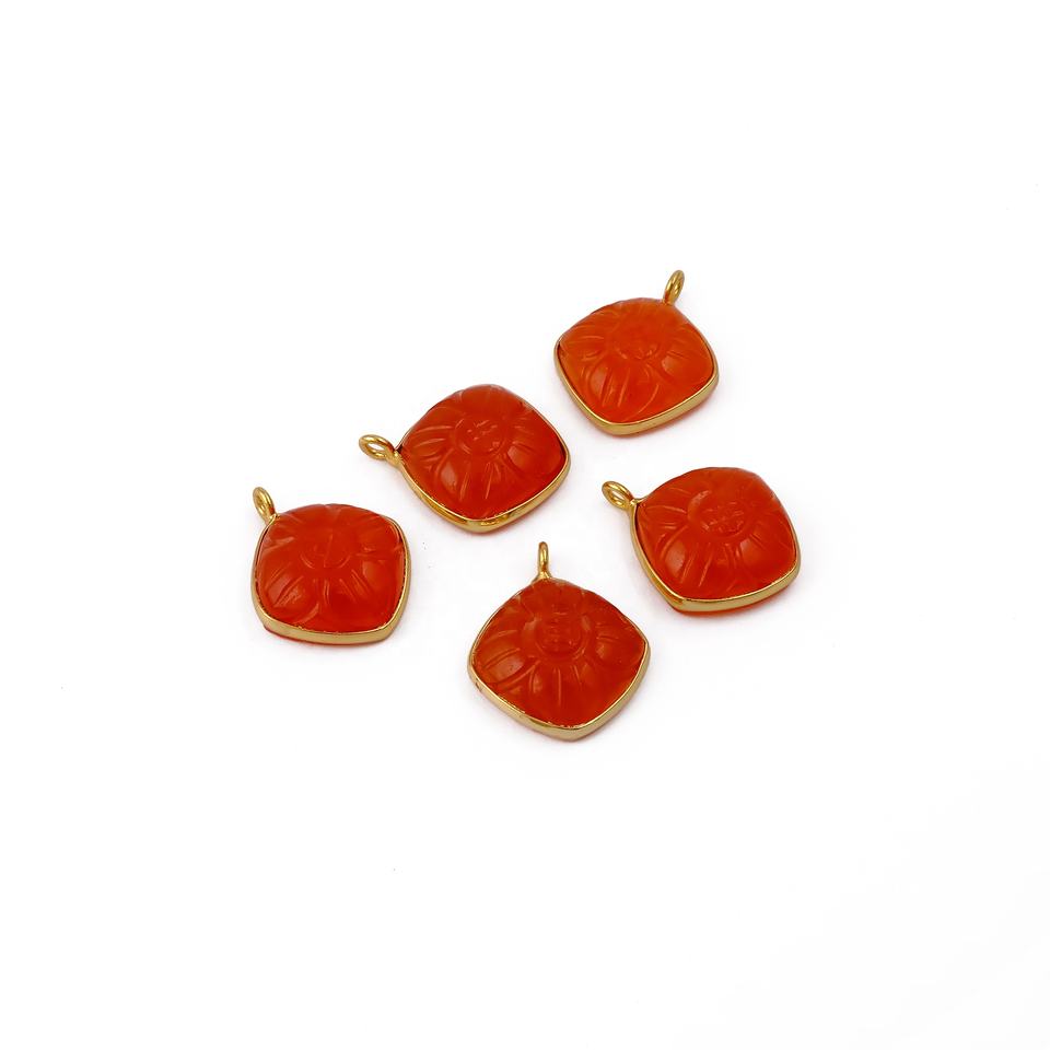 Carnelian Flower Carved Cushion Charm Stone Bezel set Gold Plated Carving Jewelry Fashion Wholesale Pendants