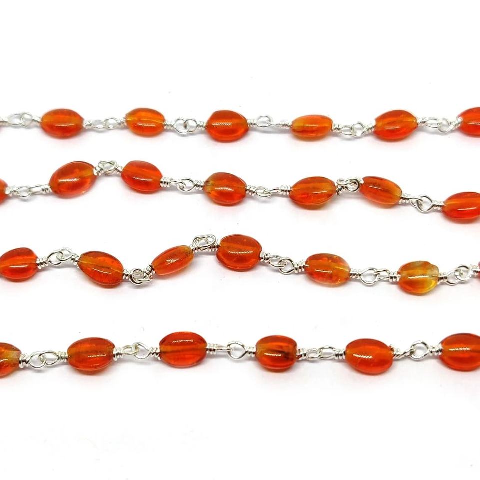 Carnelian Hydro Beaded Rosay Chain Carnelian Faceted Beads Silver Plated Rosary Chain Roll For Jewelry Making Wire Wrapped Bulk