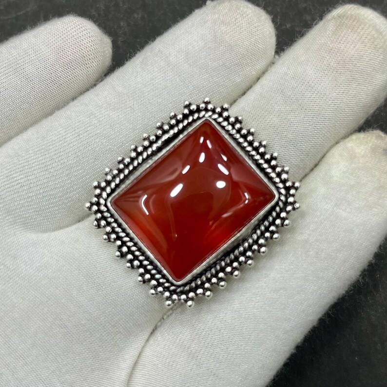 Carnelian Oval Cut Sterling Silver Handcrafted Bohemian Statement Gemstone Jewelry IGI Certified Gift for Her Women Fashion Ring