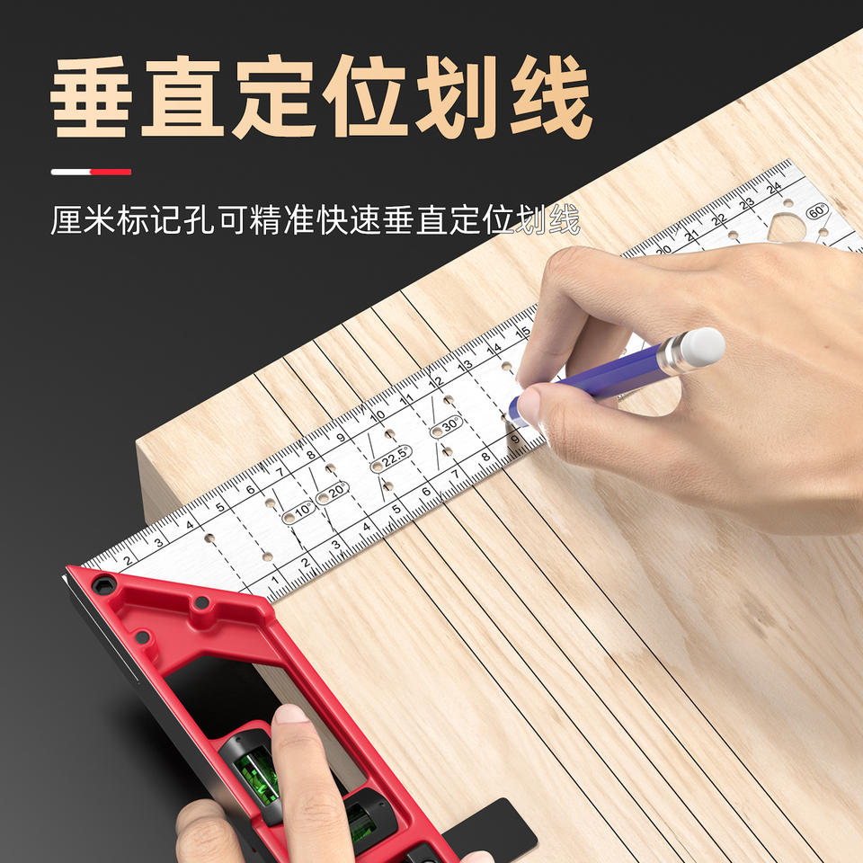Carpentry Marking Ruler 30cm High Precision Woodworking Angle Ruler With Level For DIY Measuring And Marking