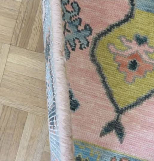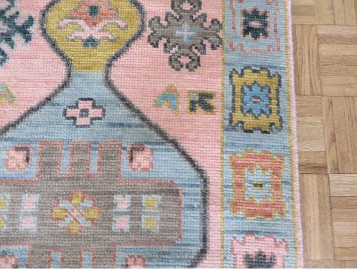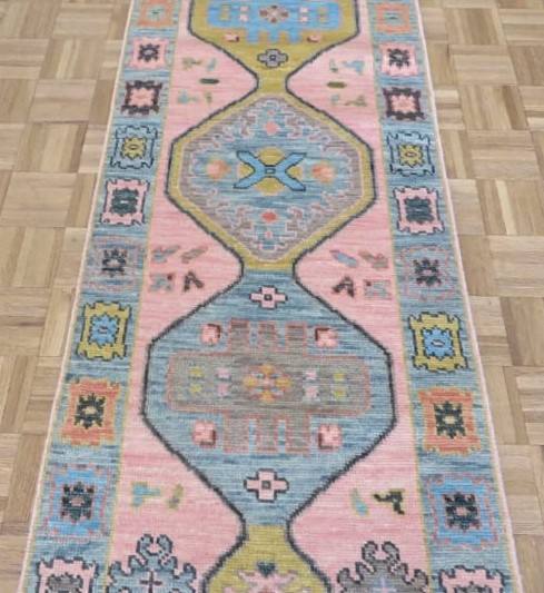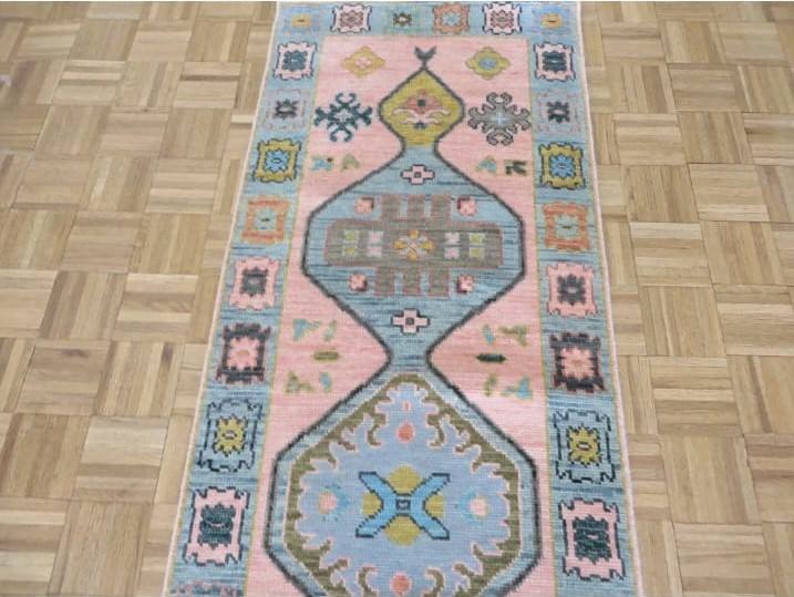 2.8x12 Runner Oushak Rug Hand Knotted:2.8x12 Runner Pink Geometric Oushak Antique High Quality Wool Rug