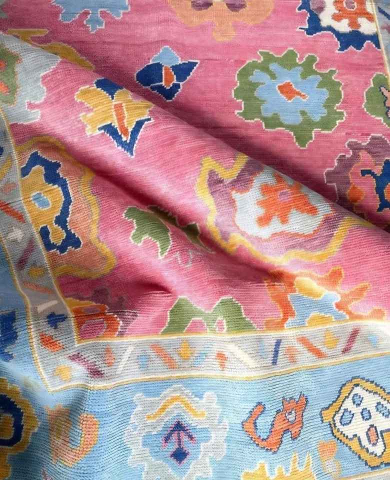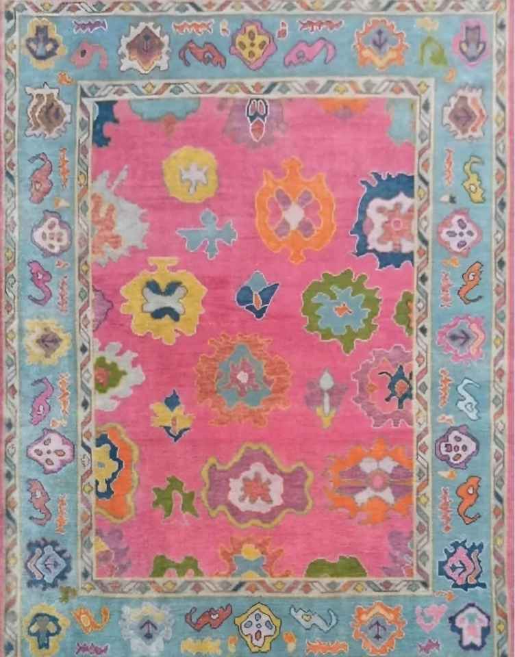 HandKnotted Oushak Rugs Persian Rugs:8x10 Pink Wool Oushak Rug Antique Handknitted Colorful