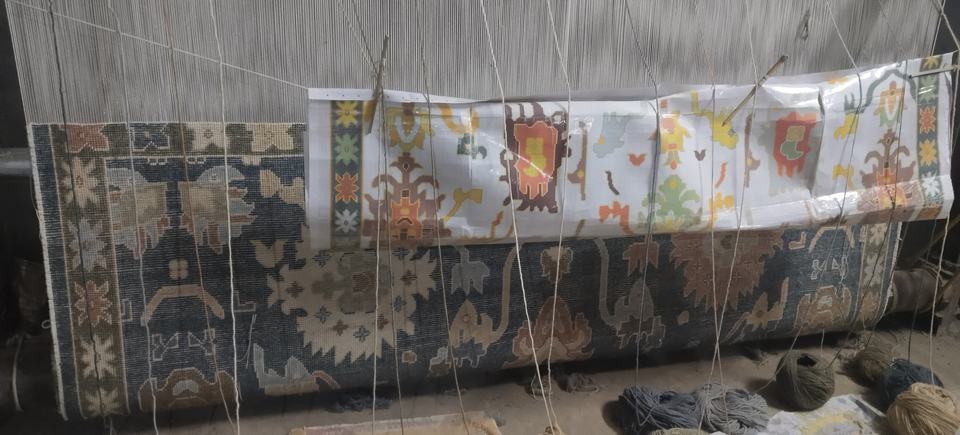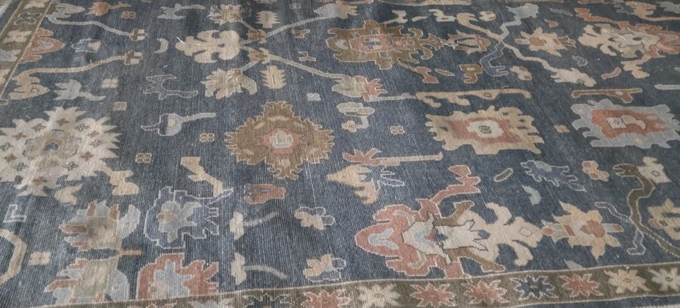 Brown Dark Blue Wool 9x12 Beautiful Rug:Brown Multicolor 9x12 Beautiful Rug , High Quality Oushak Modern