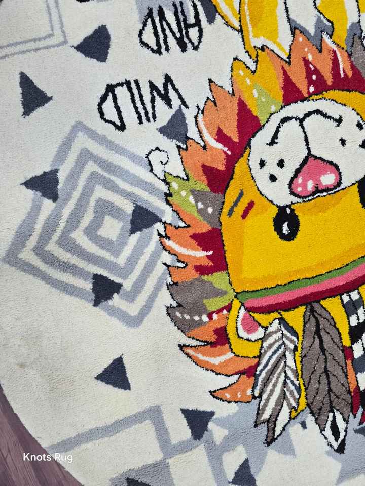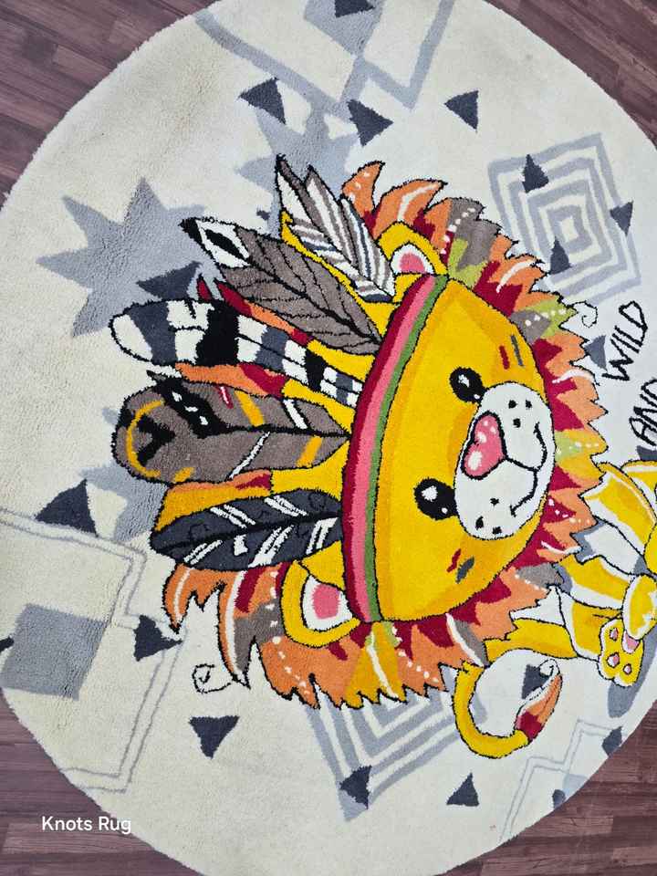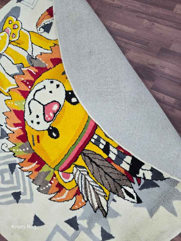 Tufted Yellows 5 Feet round Machine Made:Tufted round Machine Made Micky Lion Toye's Rug By Indian Artisans
