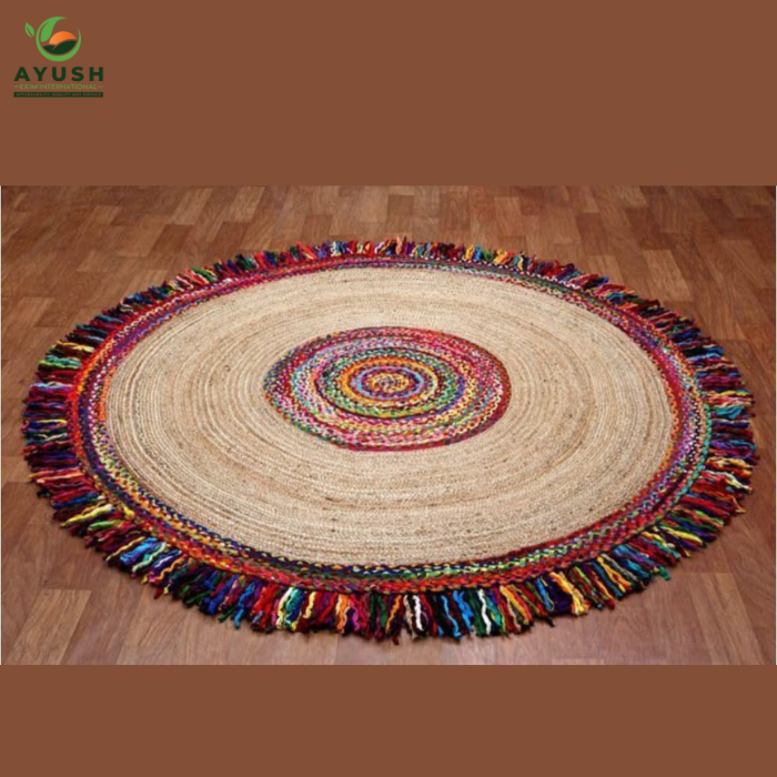 Carpet floor rugs for living room made of jute & colored cotton fabrics natural handmade carpets with customization