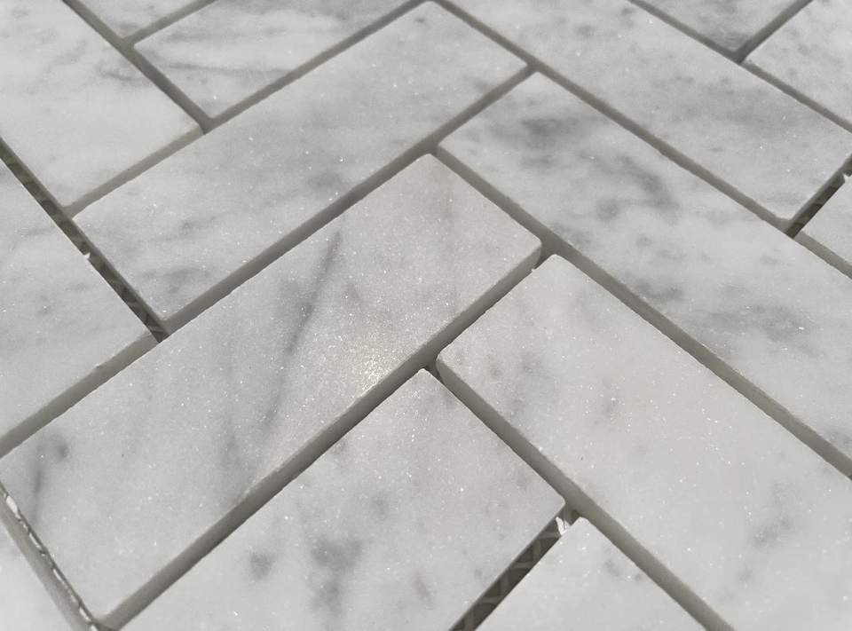 Product Name:Carrara White Marble Herringbone Mosaic Tile