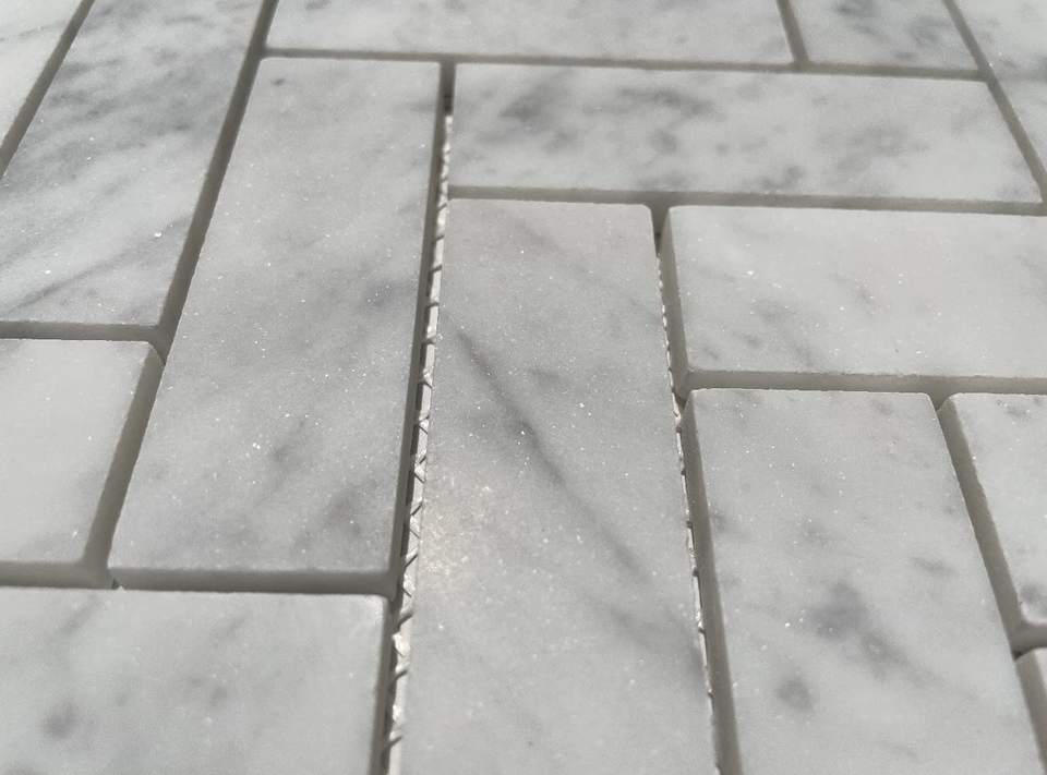 Stone Name:Carrara White Marble Herringbone Mosaic Tile