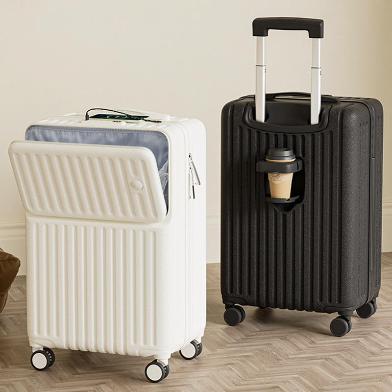 Carry-On Suitcase 24-Inch Large Capacity Trolley Case With Cup Holder Zipper Opening For Women Travel