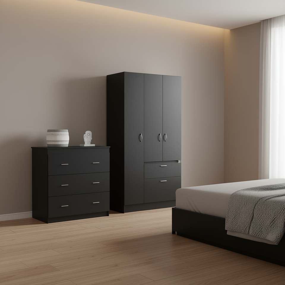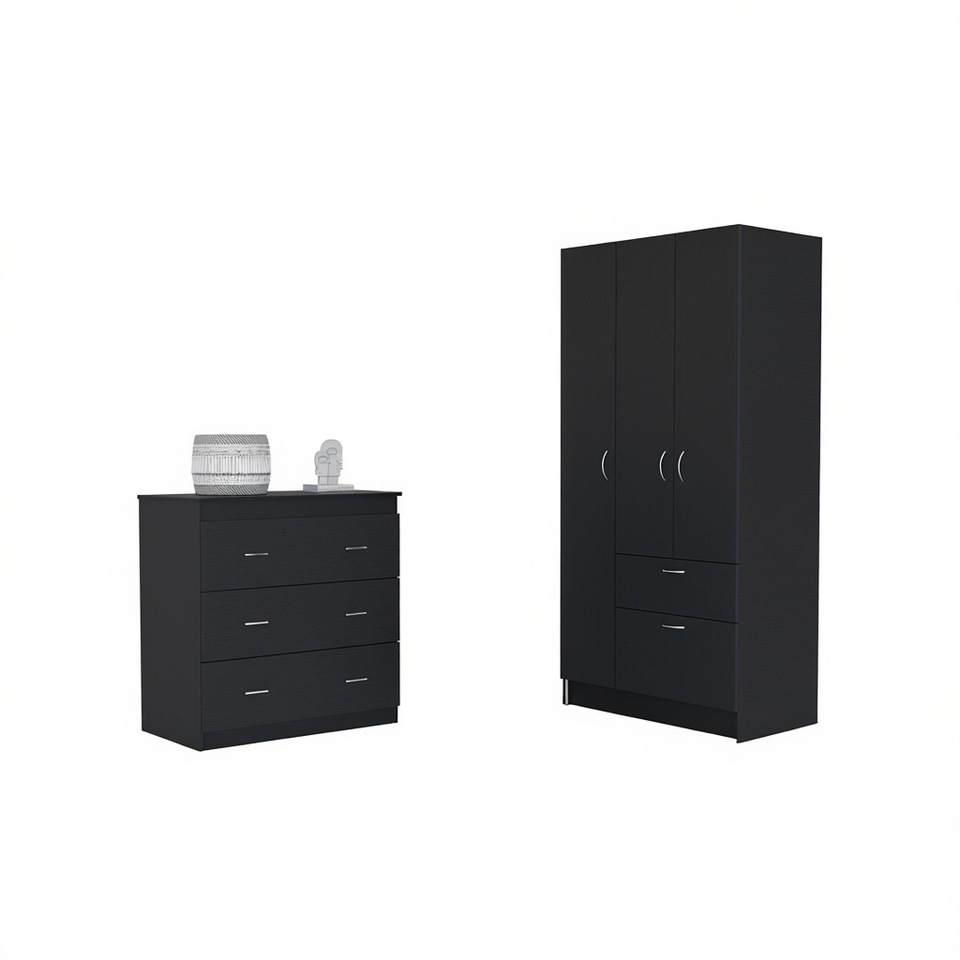 Cartagena Armoire And Capri Three Drawer Dresser In Black Bedroom Set Modern Storage Furniture