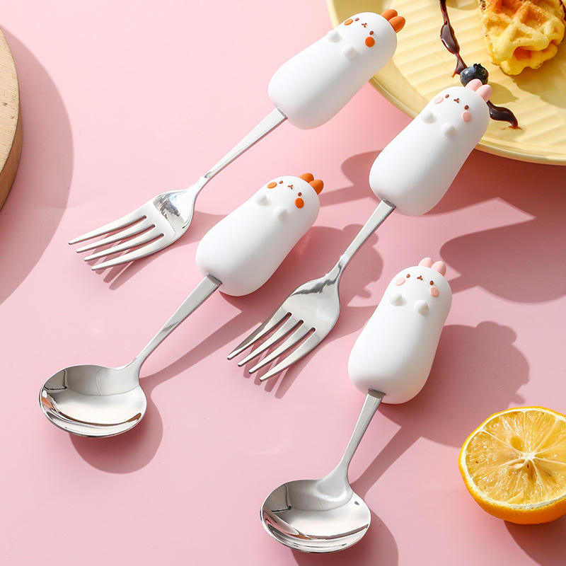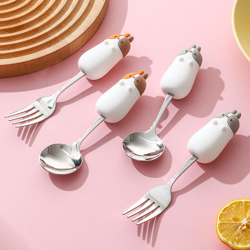 Cartoon Animal 304 Stainless Steel Spoon And Fork Set For Children Dessert Utensils Eco Friendly Hand Wash Only