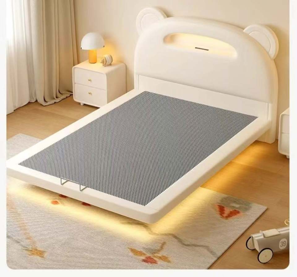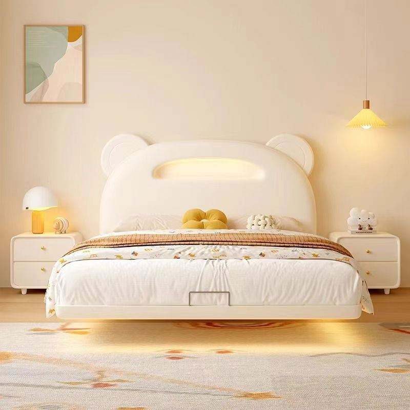 Cartoon Bear Floating Kids Bed Cream Color Princess Style 2025 New Design Solid Wood Frame for Girls Boys