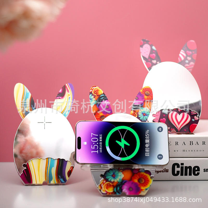 Cartoon Bear Rabbit Desk Mirror Phone Stand Wireless Charging Multifunctional Makeup Holder
