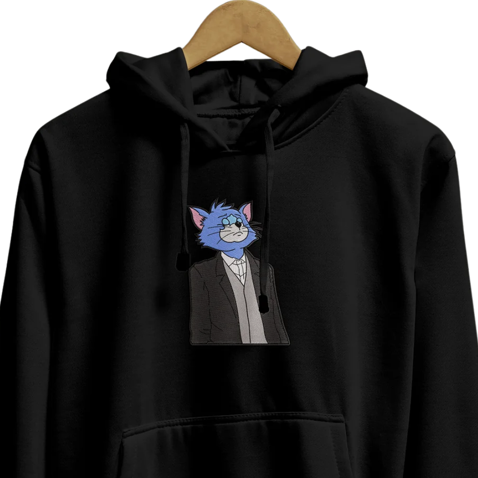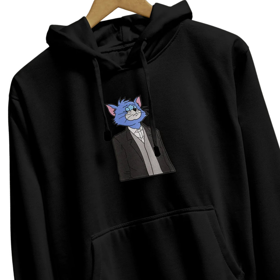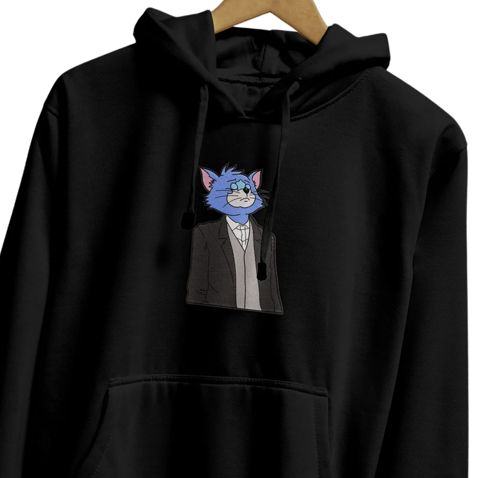 Cartoon Cat Embroidery Hoodie Unisex Cotton Fleece Pullover Oversized Black Casual Winter Warm Streetwear Fashion Hoodies Sales